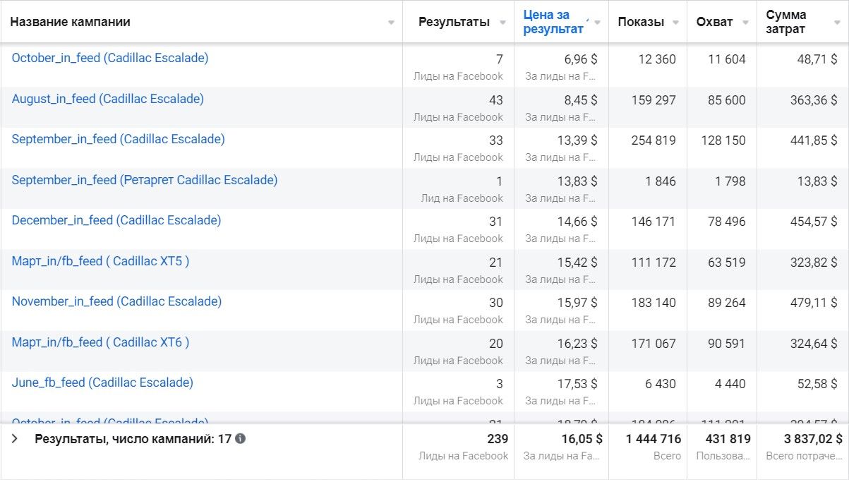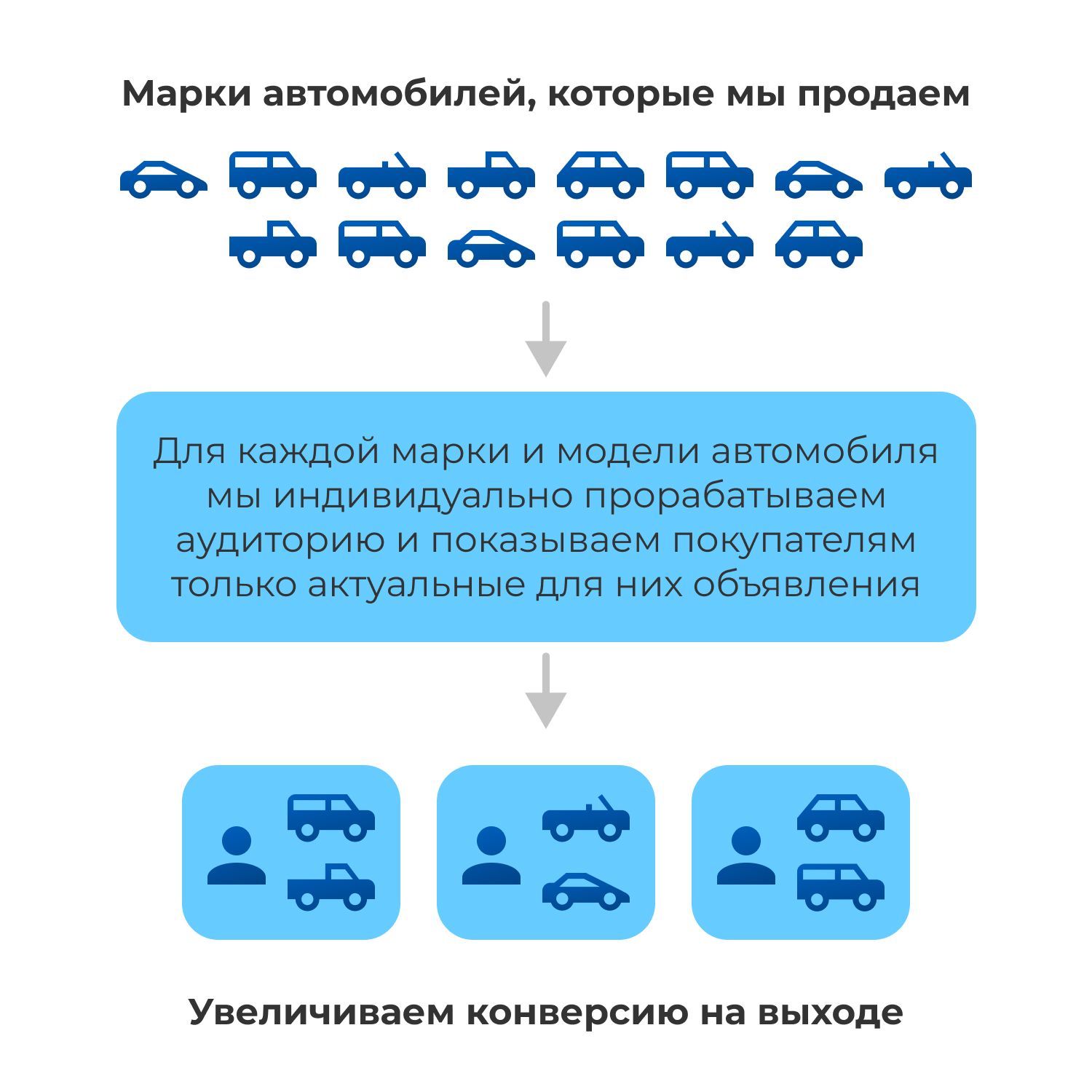 Для каждой марки и модели прорабатываем аудиторию и рекламные объявления.