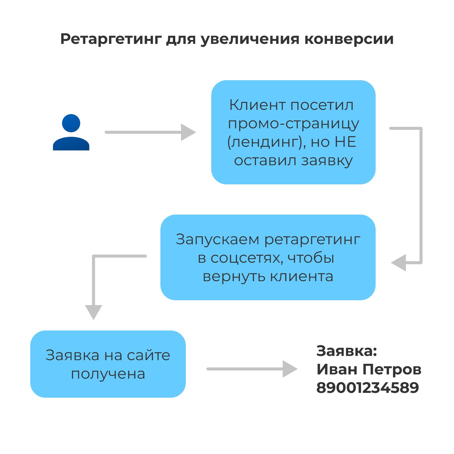 Людей, которые недавно посетили наш сайт, но не оставили заявку, догоняем рекламой в соцсетях: может быть они не увидели акции, выгоды и собираем контакты.