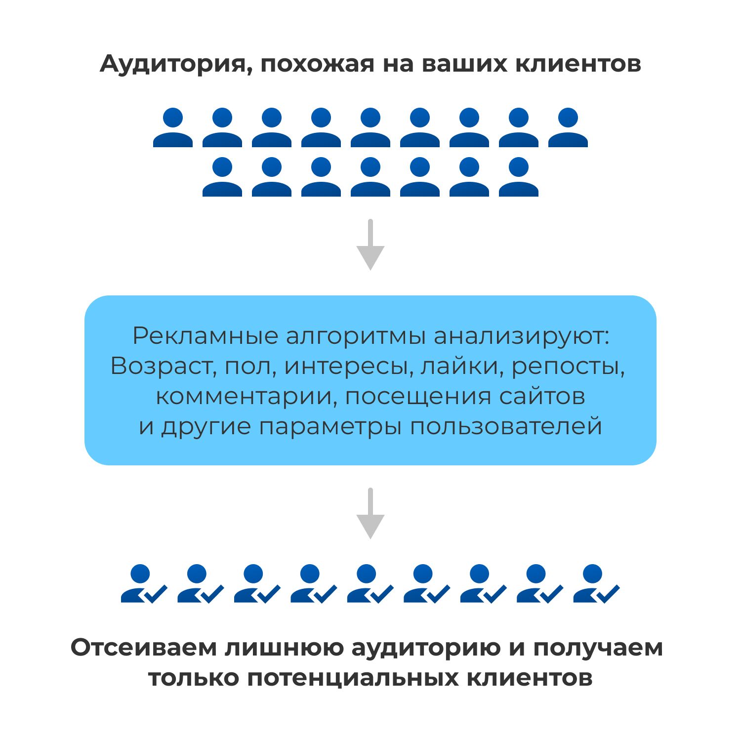 Рекламная площадка предоставляет нам людей, имеющих общие черты с нашими клиентами
